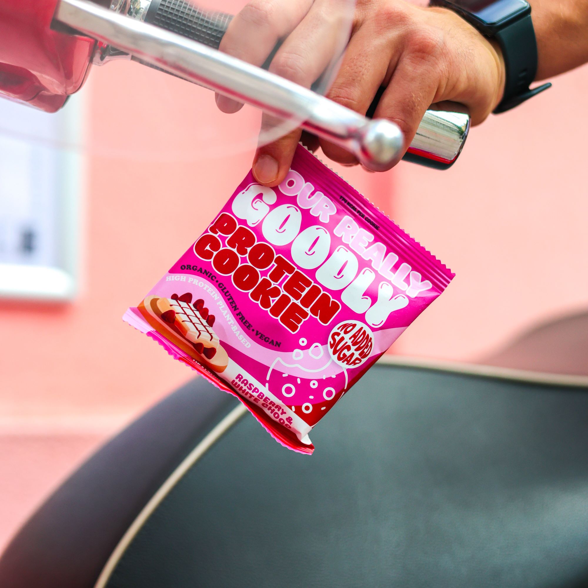 Съставки: Овесено брашно (без глутен)*, сироп от фурми*, грахов протеин*, кокосово масло*, какаово масло* 3.8%, малини* 3%, кокосово брашно*, кокосова паста*, набухвател: бакпулвер*, естествен антиоксидант: екстракт от розмарин*.